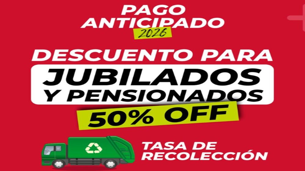 El Ejecutivo Municipal puso en vigencia el Plan de Pago Anticipado 2026, que contempla importantes beneficios para los contribuyentes. Entre las bonificaciones destacadas, se encuentra un 50% de descuento en la Tasa de Recolección de Residuos destinado exclusivamente a jubilados, un beneficio que no existía en períodos anteriores.