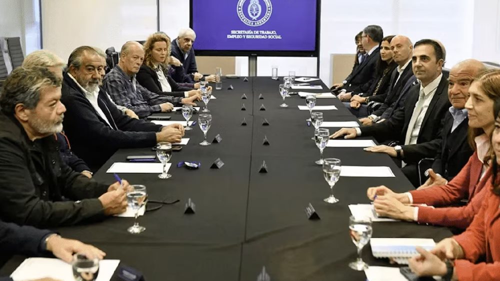 La CGT rechaza el nuevo esquema. En la foto, dirigentes gremiales con Julio Cordero, secretario de Trabajo