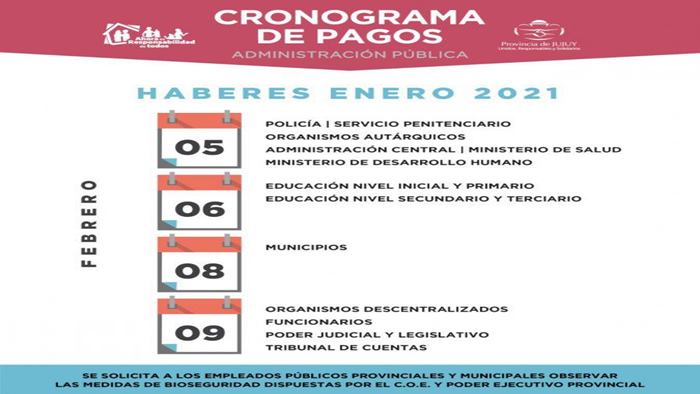 Este viernes cobrarán sus sueldos los empleados de la Policía, Servicio Penitenciario, Organismos Autárquicos, Administración Central, Ministerio de Salud y Ministerio de Desarrollo Humano.