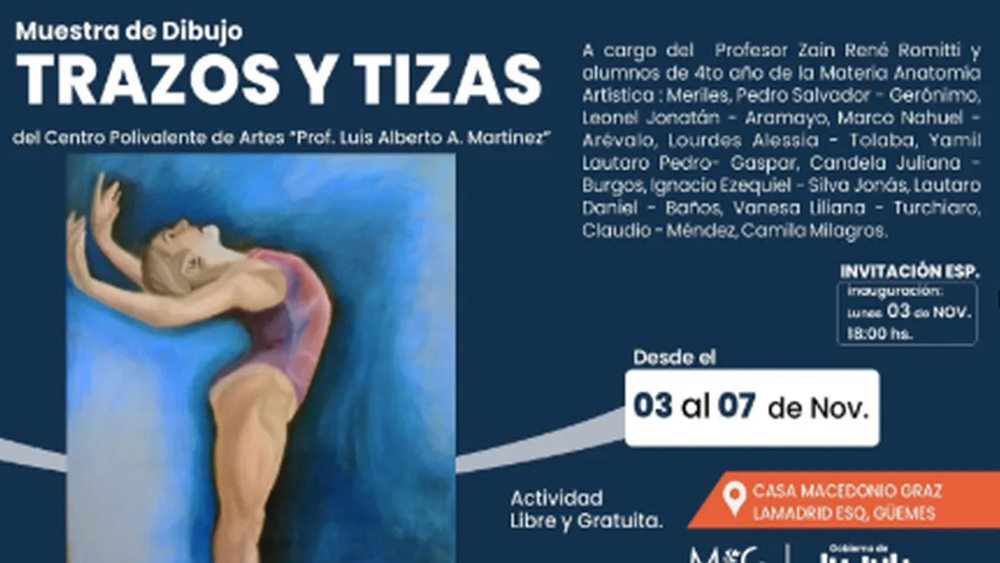 “Trazos y Tizas” puede visitarse en el horario habitual de Casa Macedonio Graz, en pleno centro de la capital jujeña, y constituye una invitación abierta al público para conocer el trabajo de estudiantes que se forman en una de las instituciones artísticas más emblemáticas de la provincia.