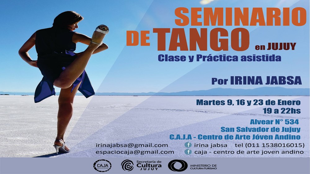 Asimismo comunica a los interesados que el día martes 9 de enero dará inicio el Curso de «Tango en Vacaciones», a cargo de la Licenciada y Bailarina Irina Jabsa Luzcubir (Buenos Aires) con un costo de $100 para todo público y bailarines. El mismo continuará los días 16 y 23 de enero en el mismo horario.
