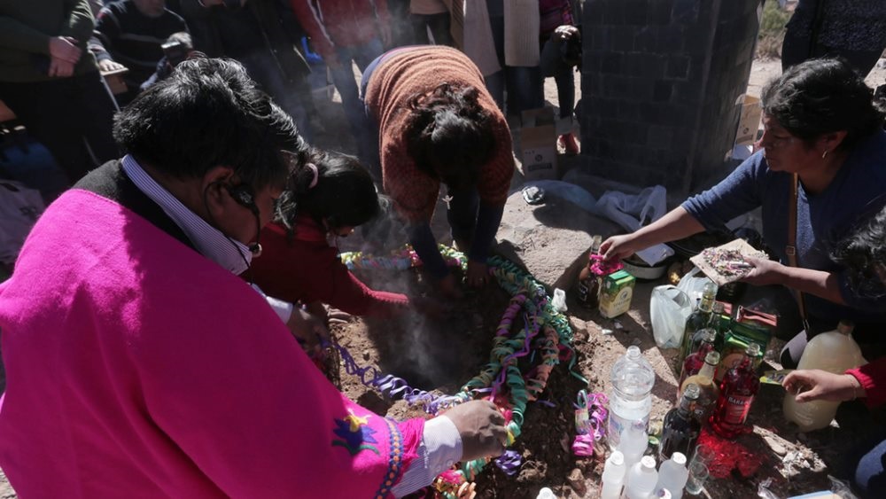 Luego Inocencia Zapana, quien será la encargada de realizar la ceremonia, invitó nuevamente a los vecinos a participar de la Pachamama, convidando las ofrendas a la Madre Tierra, junto a un grupo de compañeras que siempre acompañan. Y explicó “el significado es agradecer a la madre tierra por todo lo que nos da, lo que nosotros generalmente sembramos, puesto que cada región tiene su forma de hacerlo”.
