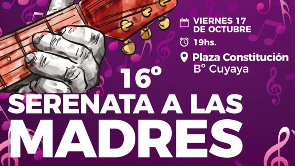 Como es tradicional en el mes de octubre, la Municipalidad de San Salvador de Jujuy brindará la “XVI Serenata a las Madres” el viernes 17, en inmediaciones de la Plaza Constitución del barrio Cuyaya, a partir de las 19 horas.