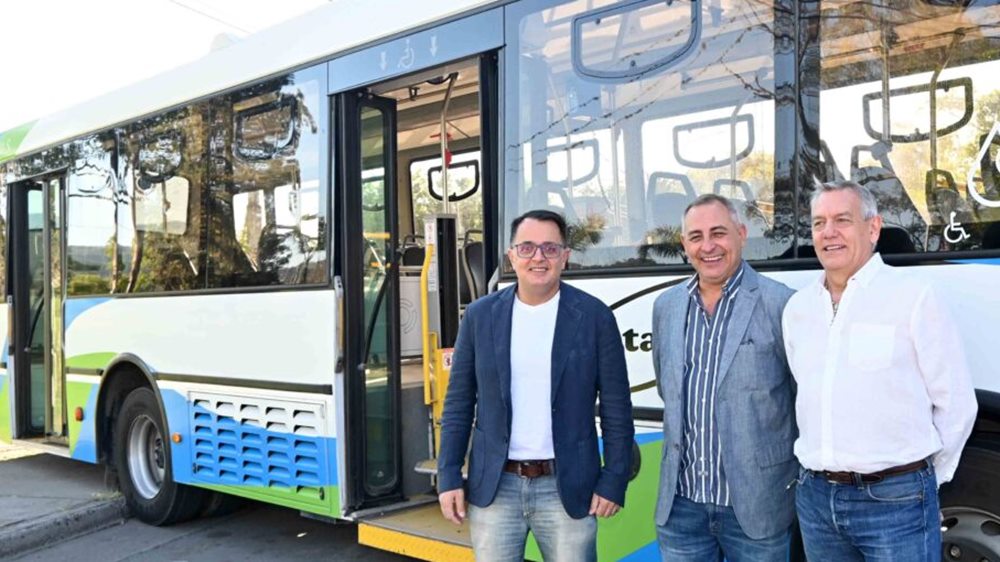 La presentación del nuevo colectivo se realizó en la playa de estacionamiento de la Pista de la Salud y contó con la presencia del presidente del Concejo Deliberante, Lisandro Aguiar; el secretario de Servicios Públicos, Guillermo Marenco; y el titular de la empresa, Jorge Castelli.