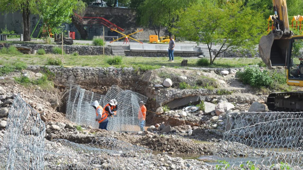 Actualmente, los trabajos se concentran en el puente Gorriti, donde se ejecuta la tercera estructura con 350 m³ de gaviones y colchonetas. Estas tareas se encuentran en su etapa final y se prevé su conclusión hacia fines de esta semana.