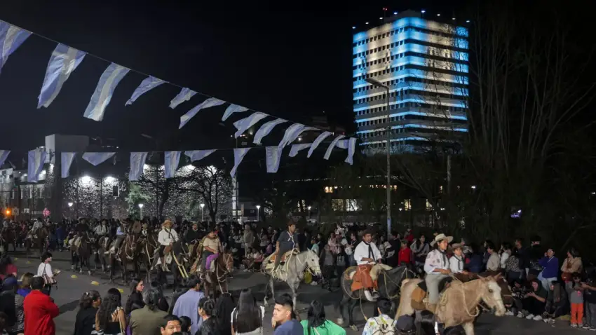 La intervención permite que la fachada del histórico edificio se vista de celeste y blanco, recreando la Bandera Nacional como símbolo de identidad y homenaje a la gesta heroica de 1812.