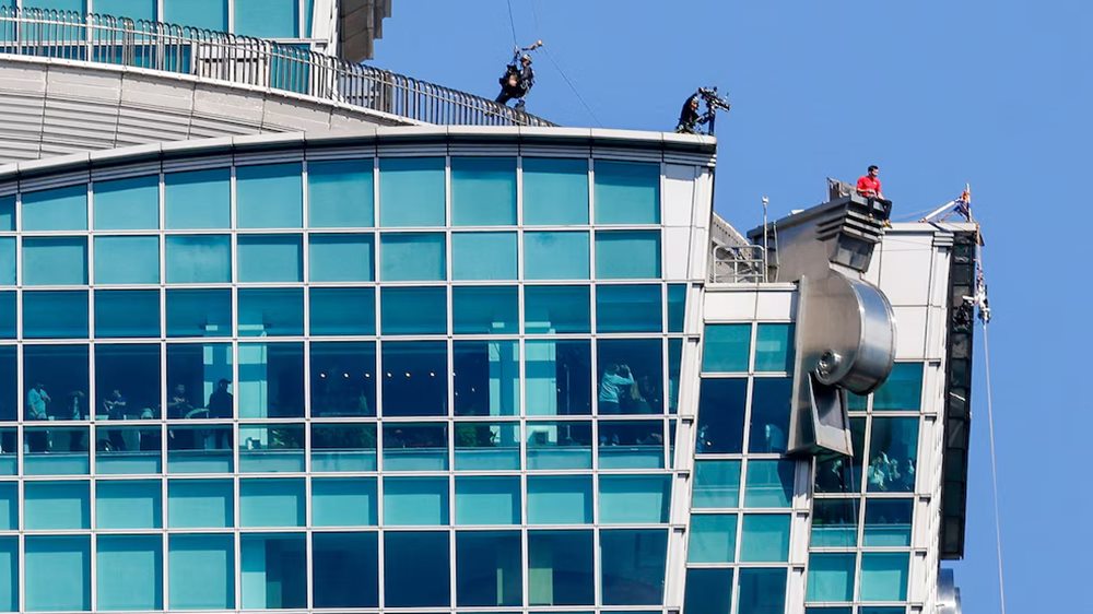 La etapa final, considerada la más peligrosa, comenzó al alcanzar la torre superior del rascacielos. Los desplomes y la falta de puntos de apoyo obligaron a un esfuerzo extremo antes de avanzar por los anillos hasta la aguja final, coronada por una pequeña esfera metálica suspendida sobre el vacío.