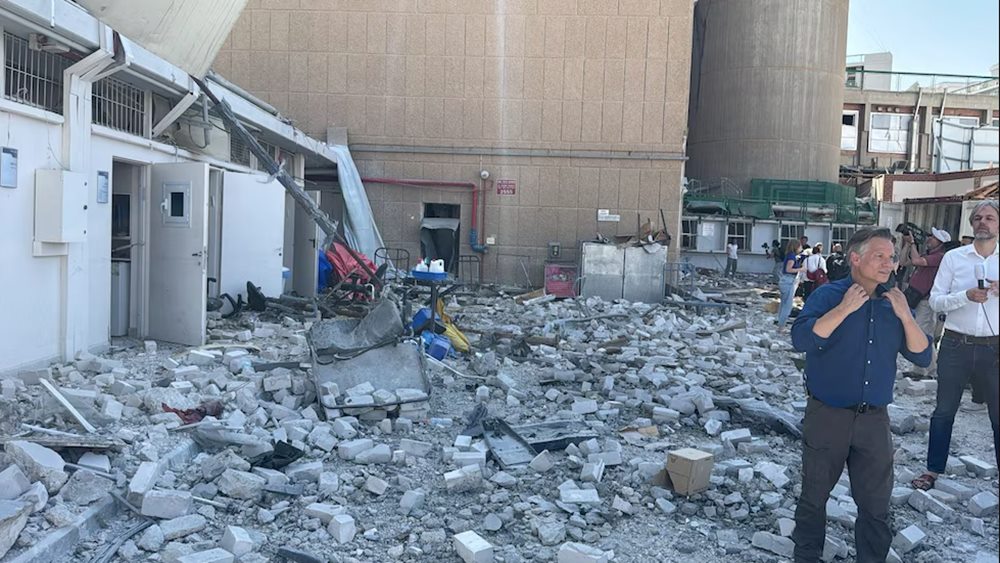 La imagen muestra los escombros esparcidos tras el ataque de Irán al Hospital Soroka, el mayor centro de salud del sur de Israel