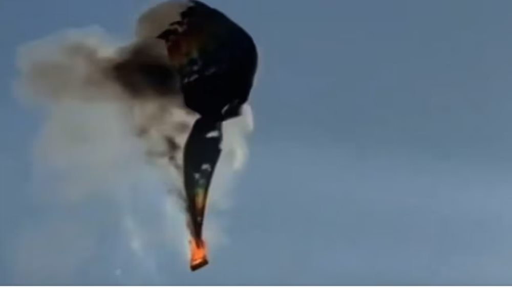 Una persona se suspende de globo mientras se incendia por dentro