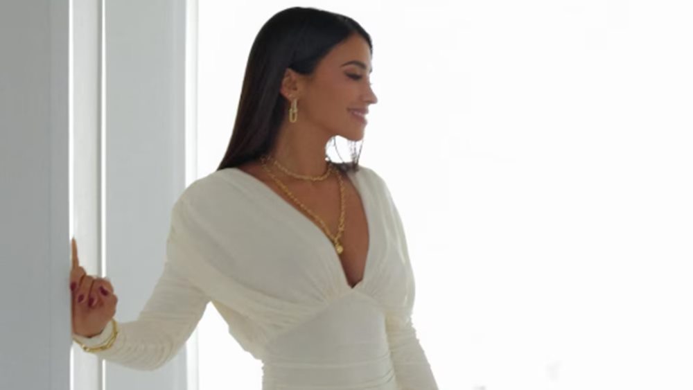 El protagonista del outfit fue el vestido maxi HAYDEN, confeccionado en crepé blanco. La prenda combina un escote en V profundo, hombreras que aportan estructura, cintura fruncida para estilizar la silueta y una caída larga y fluida que suma movimiento. Clásico y audaz a la vez, está pensado para eventos nocturnos y celebraciones especiales, con forro completo que asegura comodidad y una caída impecable.
