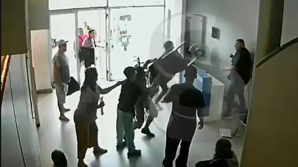 El ataque ocurrió minutos después de las 16, cuando dos hombres ingresaron al establecimiento visiblemente alterados y arremetieron contra un guardia de seguridad. Las cámaras del sanatorio captaron toda la secuencia.