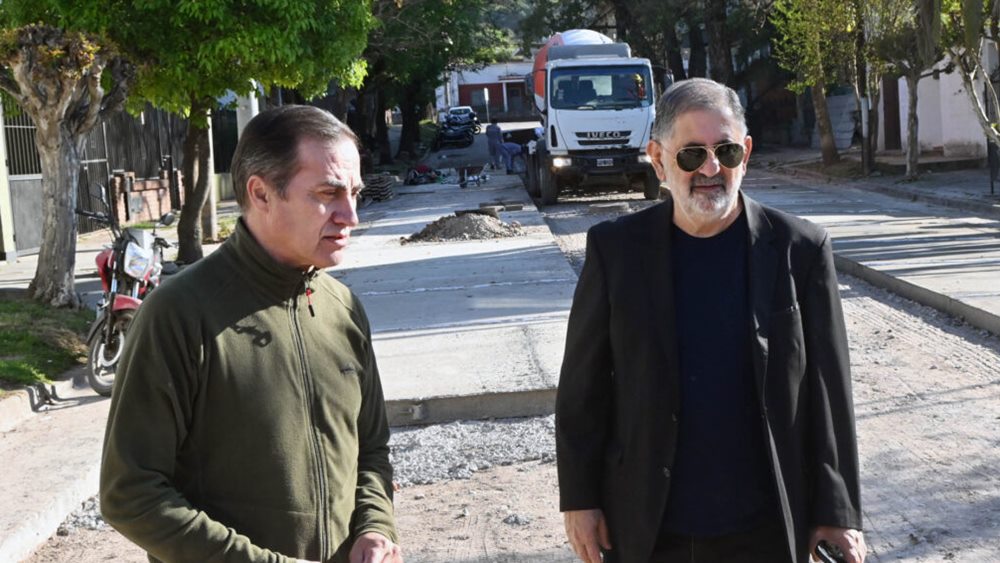 El intendente Raúl Jorge y el secretario de Obras Públicas, Aldo Montiel, recorrieron los trabajos de pavimentación de la calle El Sauce, en el tramo comprendido entre avenida Illia y calle El Jazmín, en barrio Los Perales.