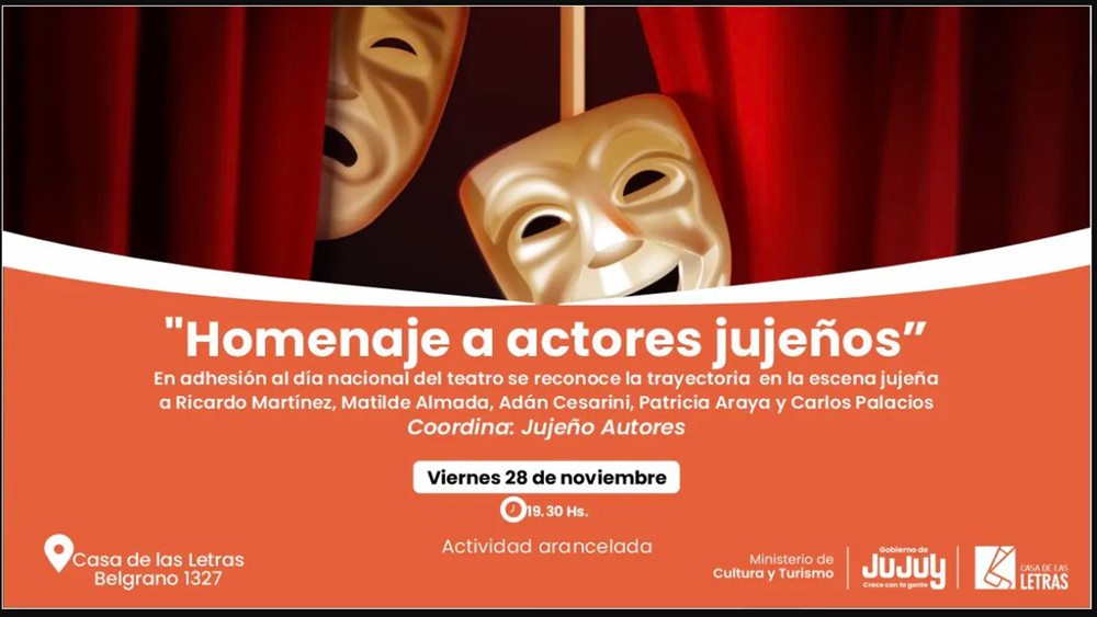 En el marco del Día Nacional del Teatro, la Casa de las Letras realizará un reconocimiento a cinco artistas que marcaron la escena local con su trabajo y trayectoria. La celebración tendrá lugar el viernes 28 de noviembre, a las 20.30, en la sede ubicada en Belgrano 1327, con entrada arancelada y la coordinación de Jujeño Autores.